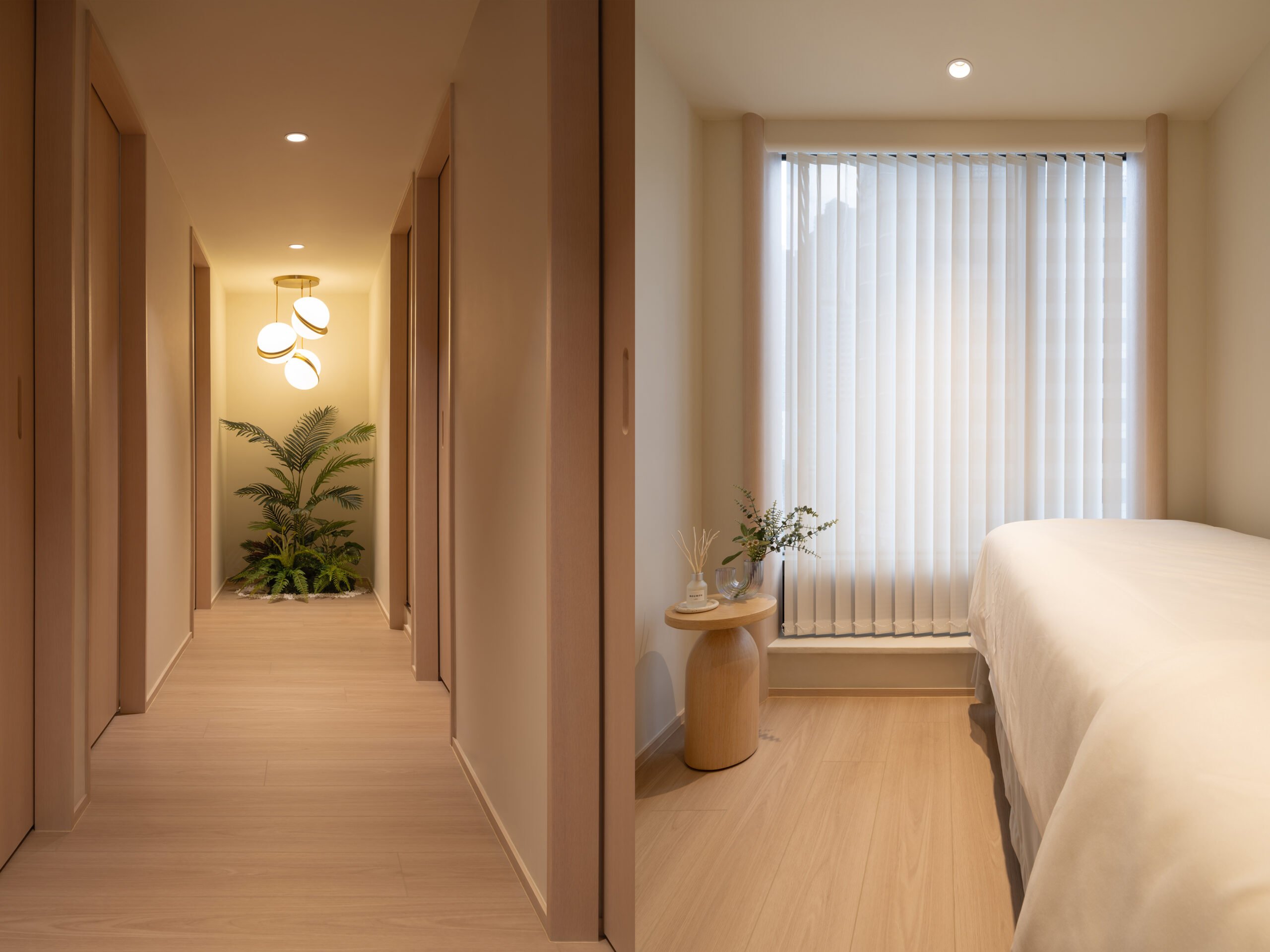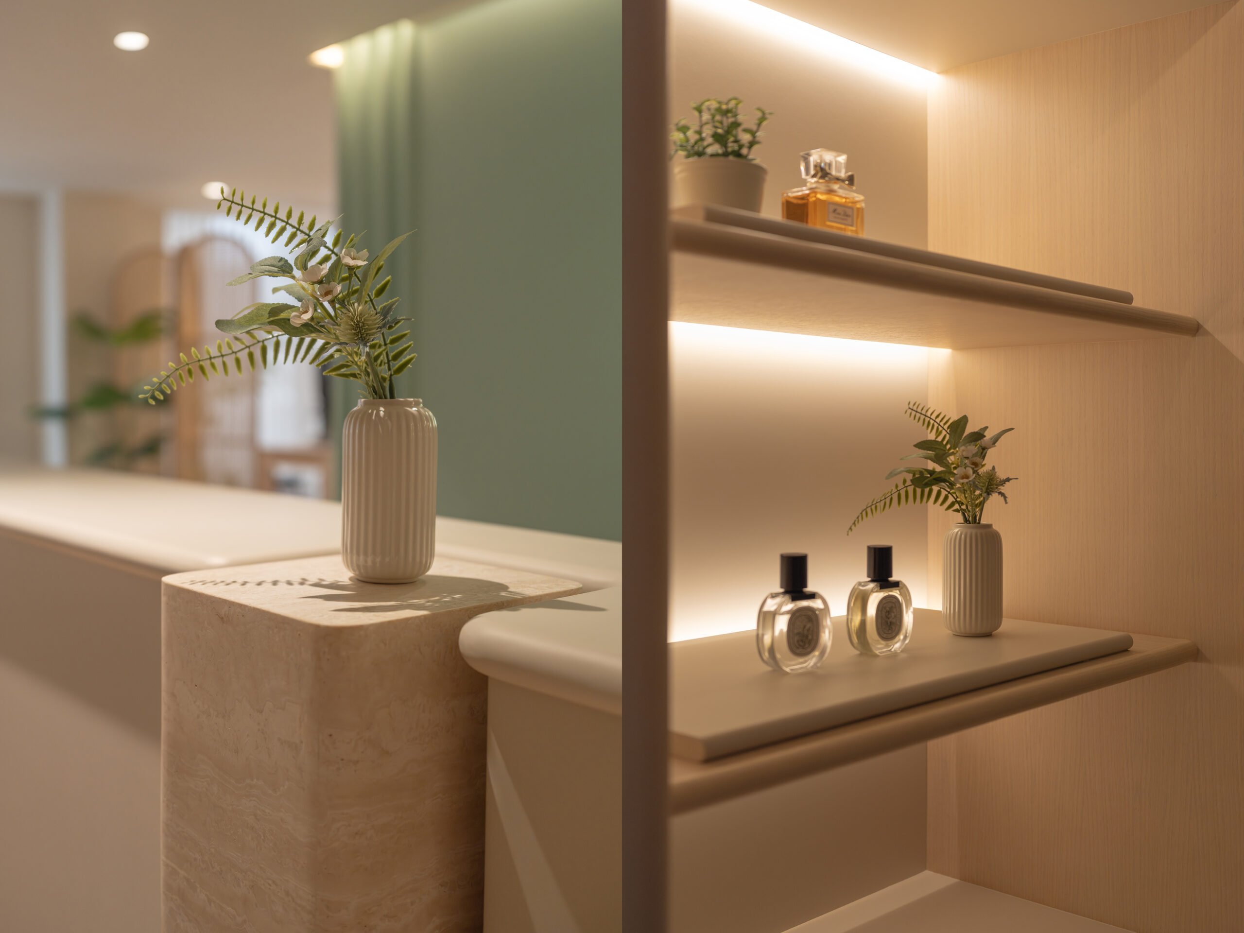 At Lumos Beauty Centre, our interior design harmoniously integrates light, nature, and spirit to create a relaxing and comfortable environment. The space features natural materials and soft tones, complemented by abundant natural light that enhances visual comfort and promotes emotional relaxation.